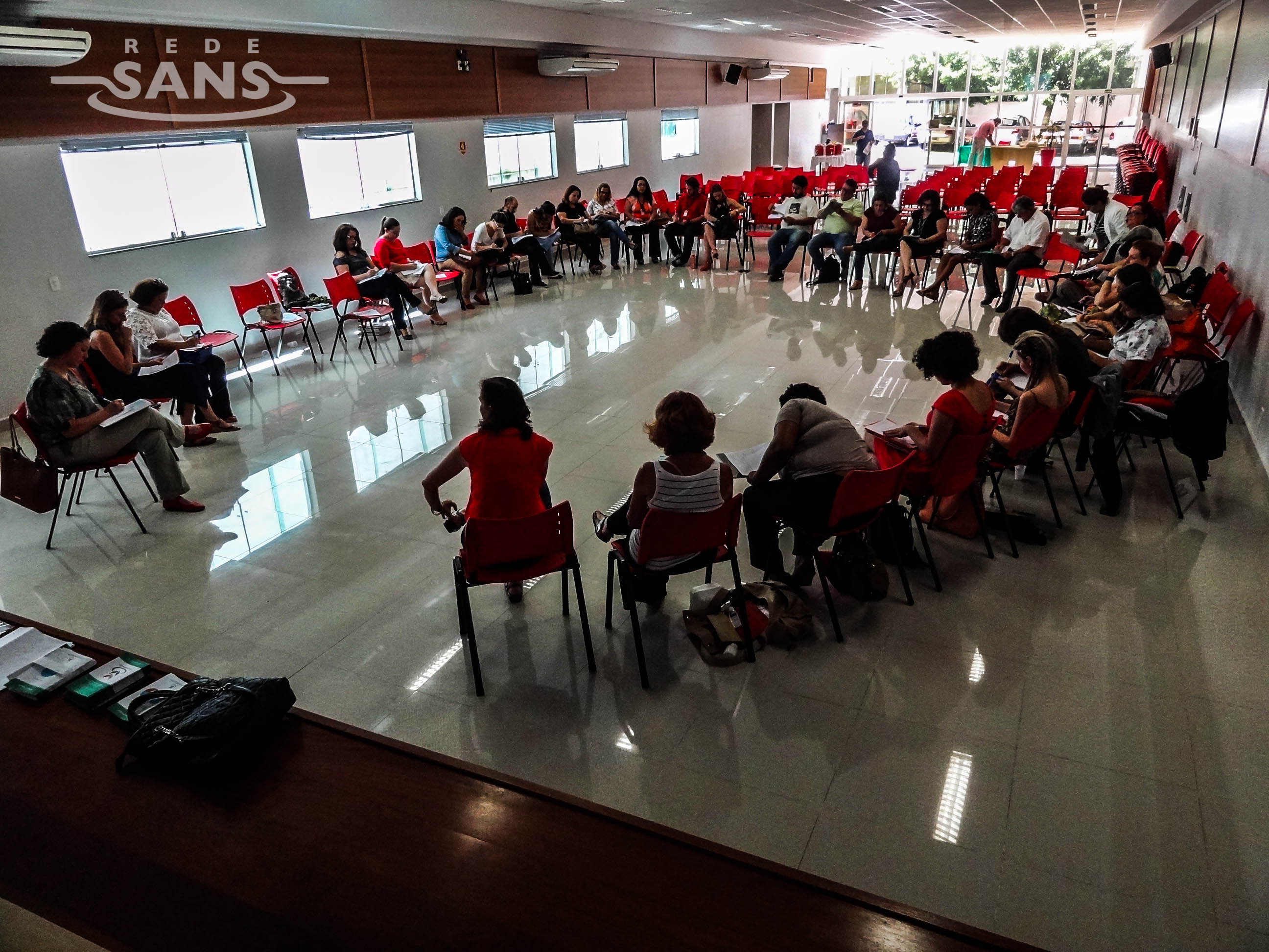 Nutricionistas, Engenheiras Agrônomas, Sociólogos, Assistentes Sociais e Técnicos, entre representantes da sociedade civil e agentes públicos, somaram cerca de 40 pessoas no local. Sentadas em roda, participaram da oficina discutindo o conceito de Segurança Alimentar, o SISAN e as possibilidades de adesão ao sistema em cada município.