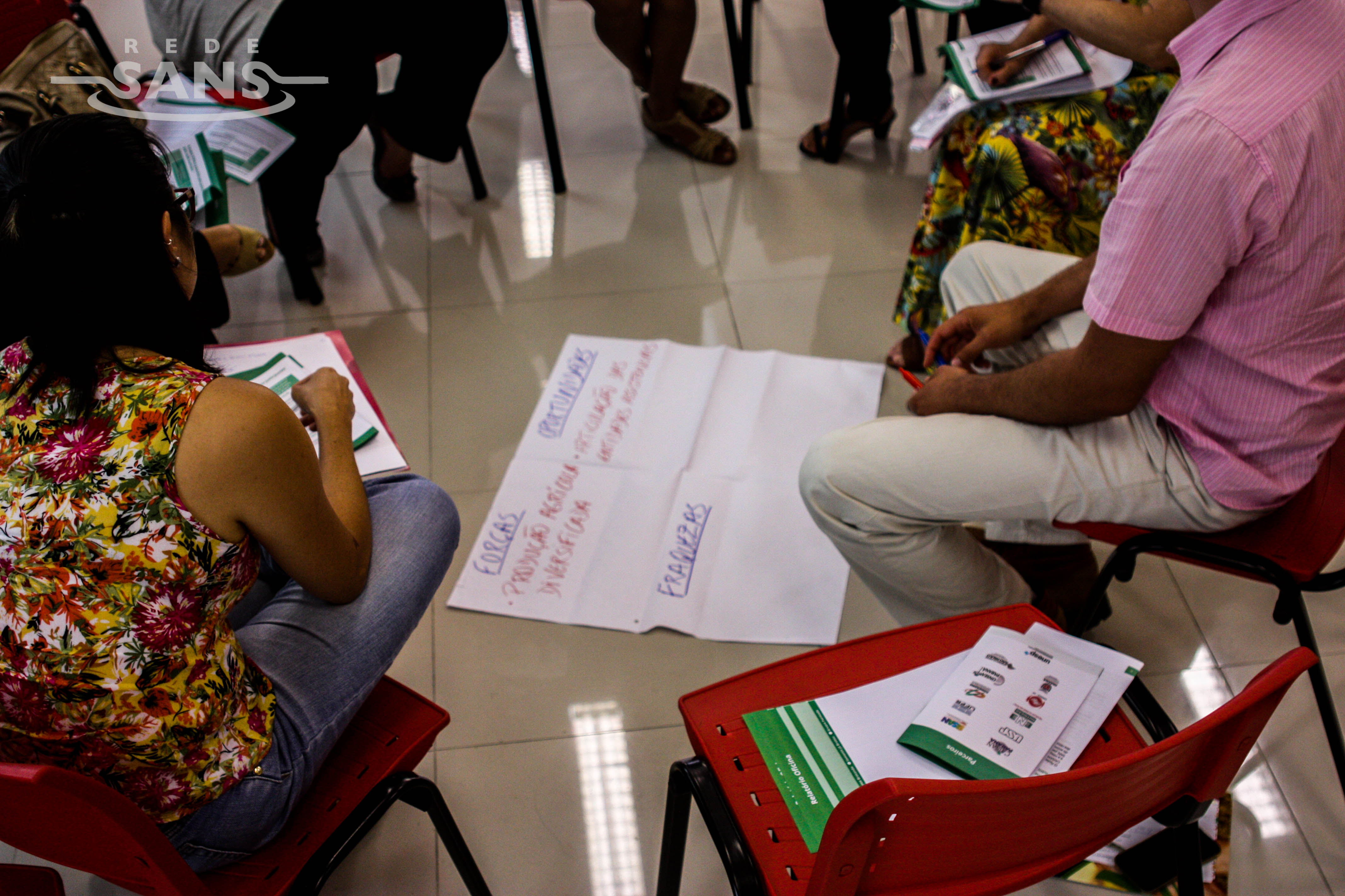 As oficinas de fortalecimento do SISAN começam com a apresentação dos presentes, que têm a oportunidade de expôr seus conceitos sobre Segurança Alimentar e Nutricional. Foram diversas temáticas levantas, desde a diversidade cultural, até a ideia ampla de soberania.