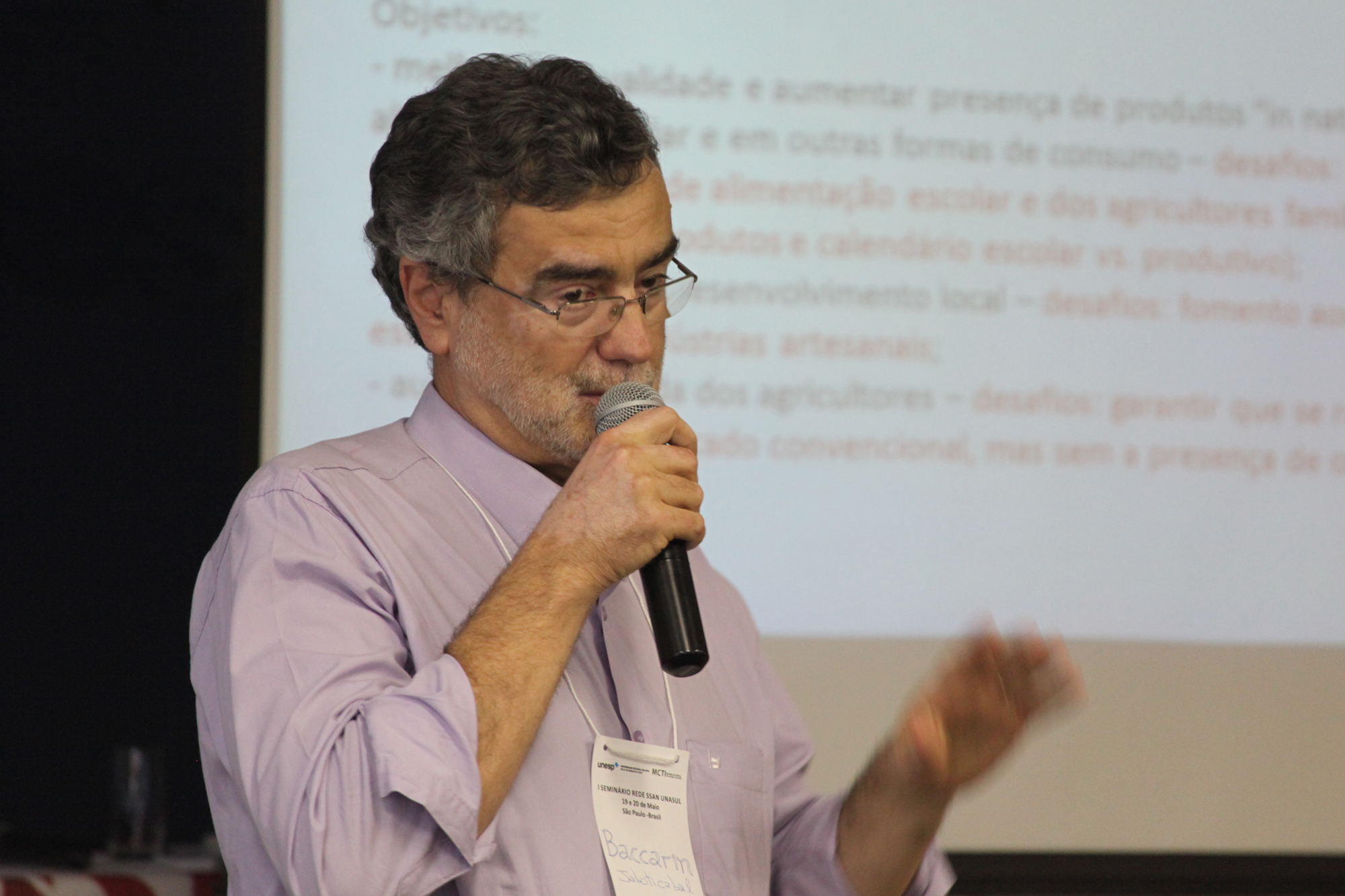 O tema do evento “Soberania alimentar e direito humano à alimentação adequada: rede de soberania e segurança alimentar e nutricional da UNASUL” foi desenvolvido em duas etapas. No primeiro dia, pela manhã, tivemos a palestra de abertura proferida por Emma CademartoriSiliprandi, que discorreu sobre “Soberania Alimentar e Nutricional na América Latina: perspectivas” e a apresentação do “Programa de Soberania Alimentar e Nutricional do governo brasileiro para a UNASUL” feita pelo Coordenador executivo da REDE SSAN-UNASUL, Osório Coelho Guimarães Neto, do Ministério de Ciência, Tecnologia e Inovação – Secretaria de Ciência e Tecnologia para Inclusão Social (MCTI/SECIS), e pela Coordenadora técnica Profa. Maria Rita Marques de Oliveira.