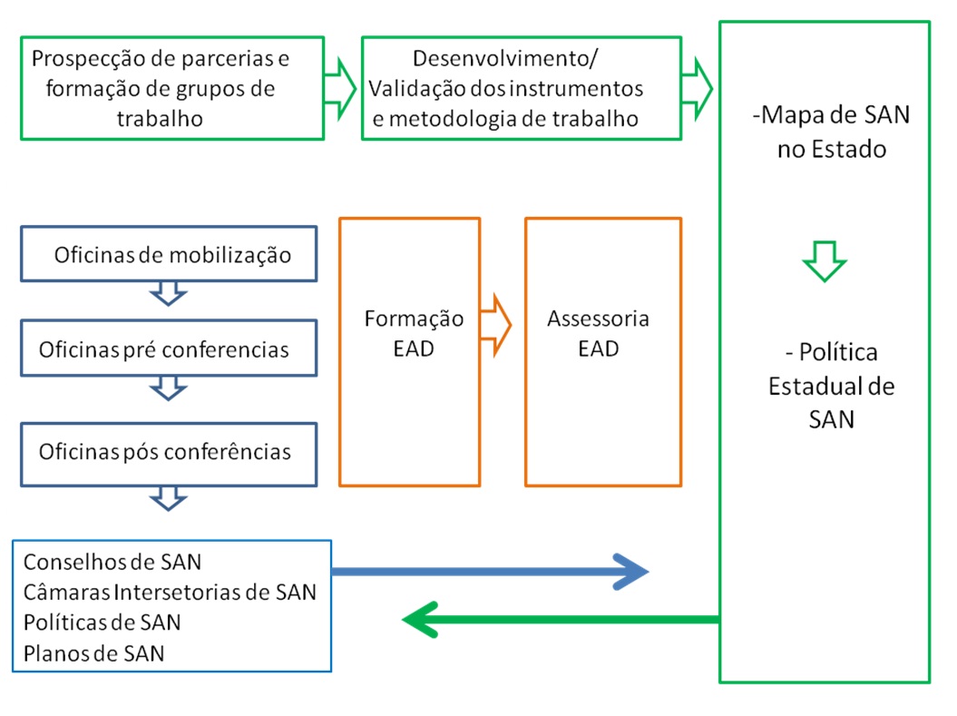 Esta parceria entre universidades, governo e sociedade civil tem como objetivo fortalecer o Sistema Nacional de Segurança Alimentar e Nutricional (SISAN) nos estados, distrito federal e municípios, a partir do apoio aos Conselhos de Segurança Alimentar e Nutricional (CONSEAs) e às Câmaras ou Instâncias Governamentais de Gestão Intersetorial de Segurança Alimentar e Nutricional (CAISANs) com a realização de assessorias para elaboração de políticas públicas e ações de capacitação, mobilização e comunicação.